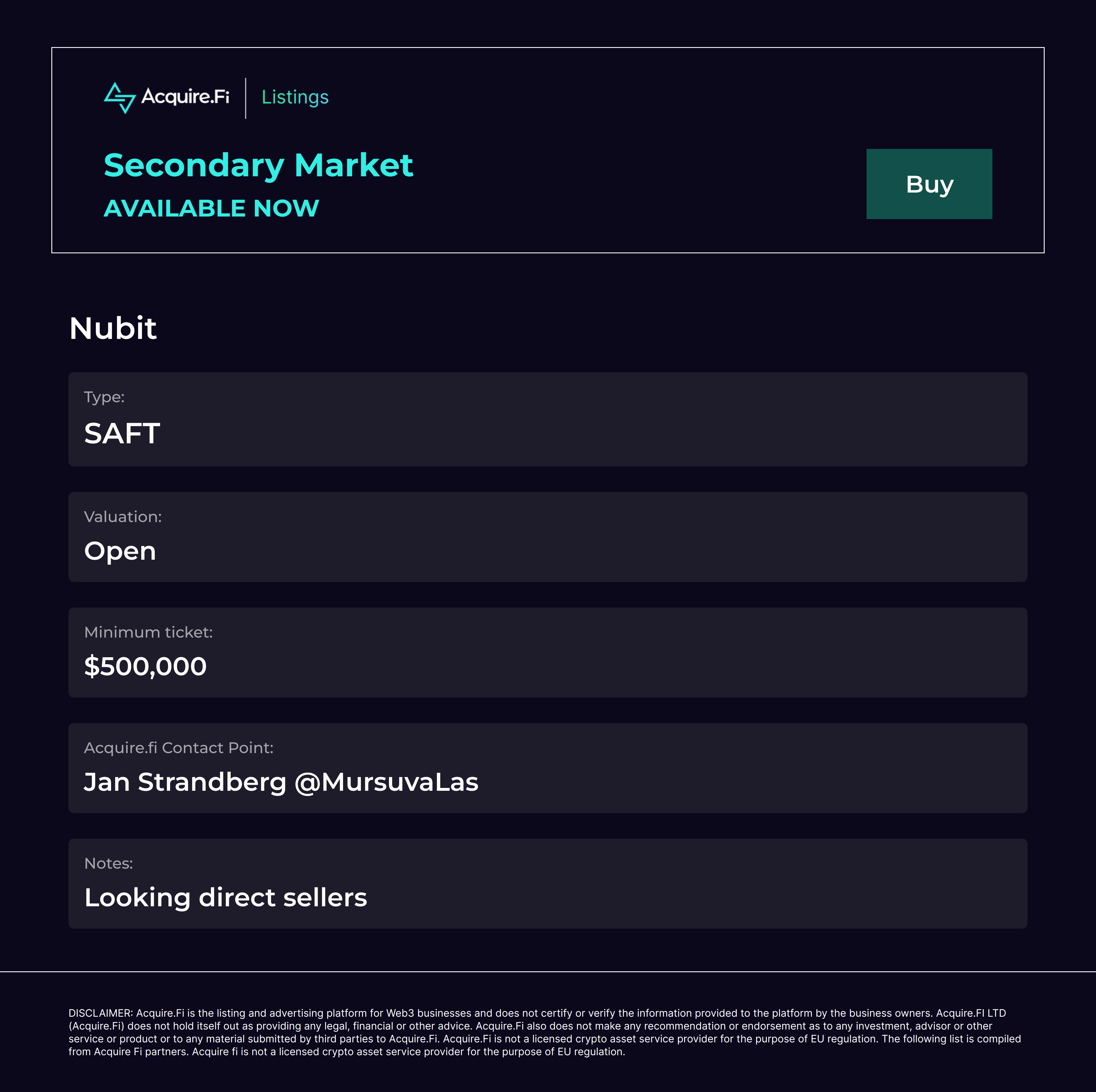 Secondary Market Buy: Nubit.